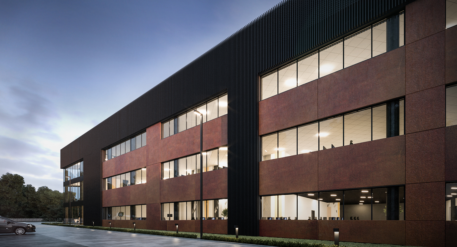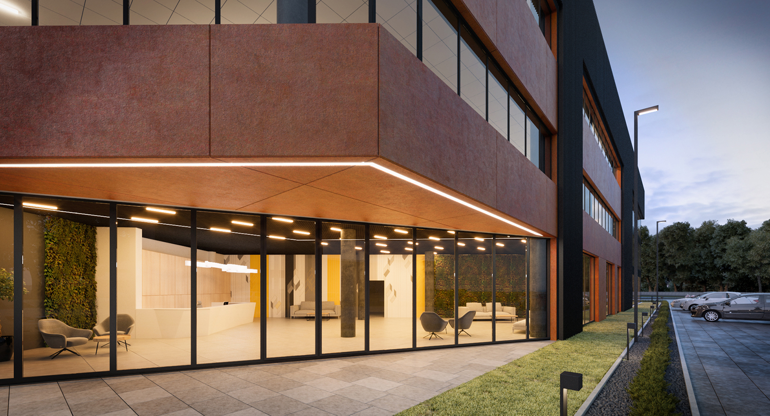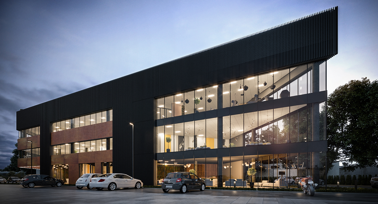 Projekt łączy prostotę geometrycznych form z wyrazistymi detalami architektonicznymi. Surowość czerni i cortenu przełamana została transparentnością szkła, co pozwoliło stworzyć budynek nowoczesny, a jednocześnie elegancki. To przykład architektury, która odpowiada na współczesne potrzeby funkcjonalne, a przy tym podkreśla prestiż i reprezentacyjny charakter miejsca.
